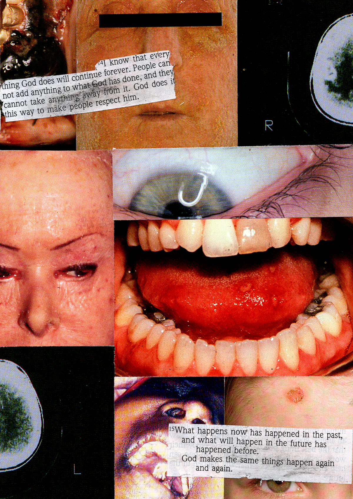 D.R. Delazar once said, "When our lives are defined by joy, we can only make choices that affirm joy in ourselves. It is only in the visage of suffering and humility that we can hope to achieve selflessness in our decisions." Reflect on your own pessimistic views with these collage prints, each featuring a unique collage of medical photographs and verses from Ecclesiastes, arguably the most depressing yet life-affirming book in the Bible.